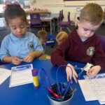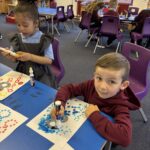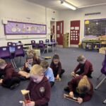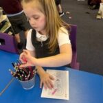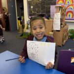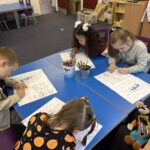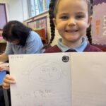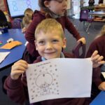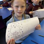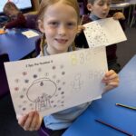 This afternoon, we listened to a story called ‘The Dot’. We were inspired to create our own masterpieces, starting from just a tiny dot. We enjoyed listening to relaxing music while we created our artwork. Remember to have a look at our work on parents night!