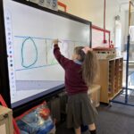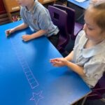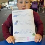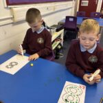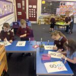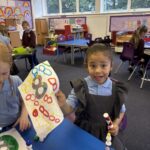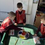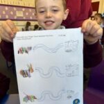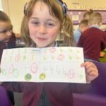 Later in the week, we worked in groups to continue some ‘caterpillar patterns’ on the big board and then used paint to continue some more! Some of us got very creative and made our own patterns using shapes. Some of us challenged ourselves to make more complicated patterns.