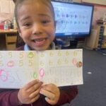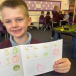 This week Primary 1 have been practising the formation of  numbers. We have had a focus on forming the digits 0, 1 and 2. We worked hard to form each number carefully and enjoyed learning helpful rhymes to help us remember how to form them correctly.