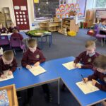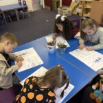We started learning about our first ‘I wonder…’ this week. We talked about stars and constellations. We created some lovely art work to display in class.