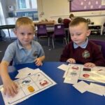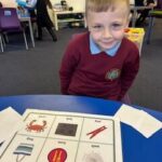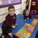 In numeracy, we also worked on matching the numicon and practiced our scissor skills at the same time, some of us are getting very good at cutting around shapes carefully.
