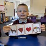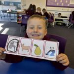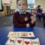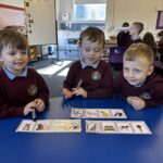 We have also been working really hard on our phonological awareness. We have been listening carefully to different sounds and discussing what sounds the same and what sounds different. Today we played an ‘odd one out’ game and managed to pick out which word started with a different sound than the others. This is a game that we can play at home for some practise, too!
