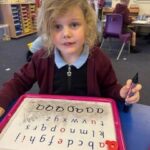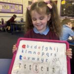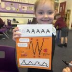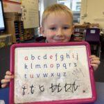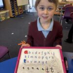 We worked hard on the formation of each letter and self assessed our work using tickled pink and green for growth.