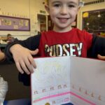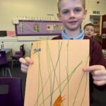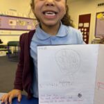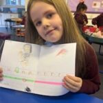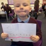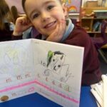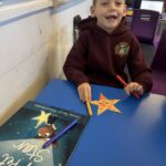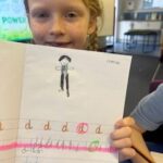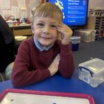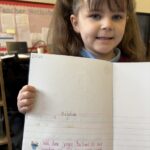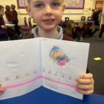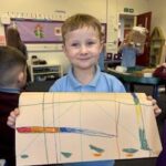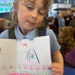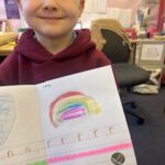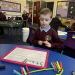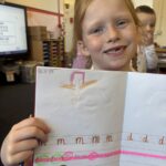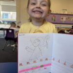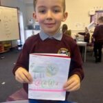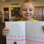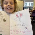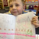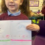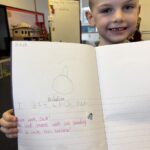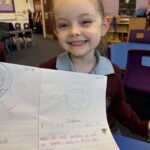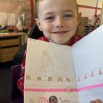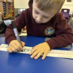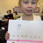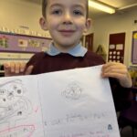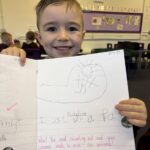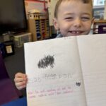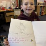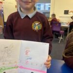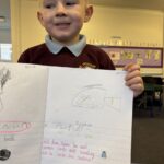 In writing, we did a detailed drawing of ‘I am splashing in wellies’.