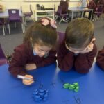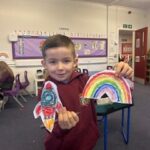 This week in literacy we have been learning about the ‘r’ and ‘m’ sounds. We have been working hard to say, make and form each sound correctly.  We consolidated our learning with lots of lovely activities. We made junk model robots, made rainbows, pictures with rulers and even went outside to launch a rocket! We made our own masks, playdoh muffins, doodled with ‘m’ and came up with some tasty meal ideas!
