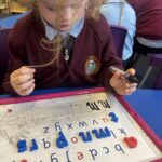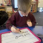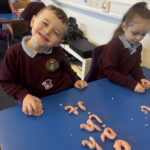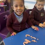 We’re continuing to work hard to recognise the letters and form them correctly. We’ve also had fun doing lots of p and n activities like designing pumpkins and making potions, designing necklaces and using Halloween pompoms to form the letter.