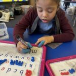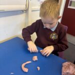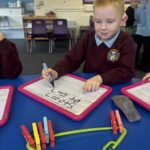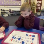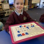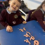 In literacy, we have been continuing to work on our common words. We have been practising writing them, recognising them and making them out of playdough. We used our knowledge of our common words and sounding out to write some dictated sentences.