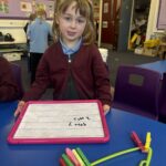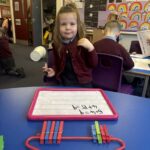 In numeracy, we continue to work on adding. We are getting more confident using words like ‘total’ ‘altogether’ and ‘calculation’. We can use resources such as the rekenreks, numberlines and tens frame trains to help us add. Some of us are enjoying challenging ourselves to add within 20!