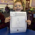 We also completed our monthly self-portrait for November. We are getting so good at adding lots of details in our drawings. Lots of us were able to write our name independently this month!