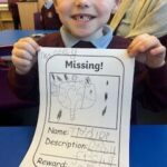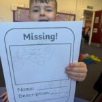We’ve also been working on adding lots of details to our drawings. We made fantastic ‘Missing’ Tiddler posters. Look at our wonderful drawing and writing.