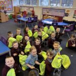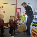This week we had a very special visit from Freddie’s uncle, also known as PC Shirkie! He talked to us about all of the people who can help us and we learned lots about being a police officer. We  talked about road safety and were given a lovely gift bag which contained special reflectors which will help to keep us safe in the dark winter months!