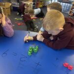 We used the spinners and animals to combine groups to find a total and also used the numicon to add. Some of us were able to use the addition sign to create our first calculations!
