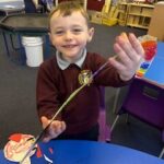 This week we had a very special visit from Freddie’s uncle, also known as PC Shirkie! He talked to us about all of the people who can help us and we learned lots about being a police officer. We talked about road safety and were given a lovely gift bag which contained special reflectors which will help to keep us safe in the dark winter months!