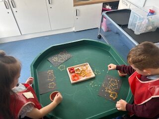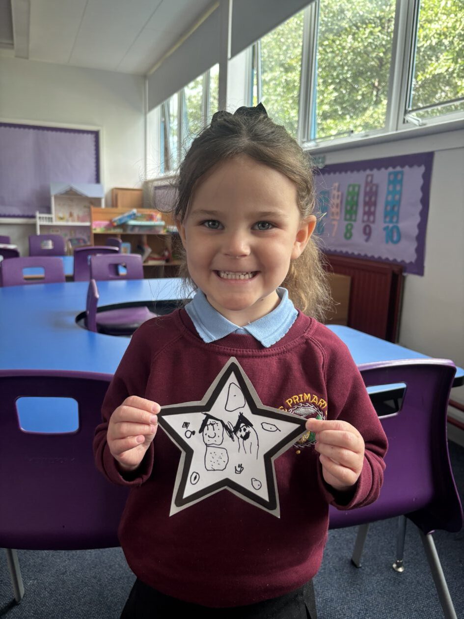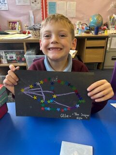 We started learning about our first ‘I wonder…’ this week. We talked about stars and constellations. We created some lovely art work to display in class.