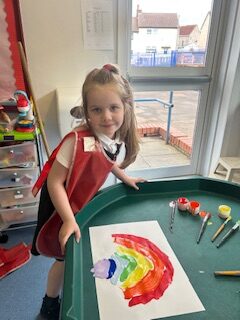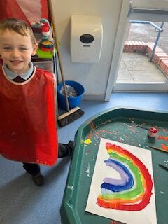 This week we also looked at the rhyme ‘Twinkle Twinkle Little Star’. We had a chat about the word ‘wonder’ and then we talked about all the things we are wondering about. We had lots of exciting wonders like “where do you find a rainbow?” “are unicorns real?” and “how did stars get into space?”. We will be trying to find out the answers to some of our interesting questions over the next few weeks!