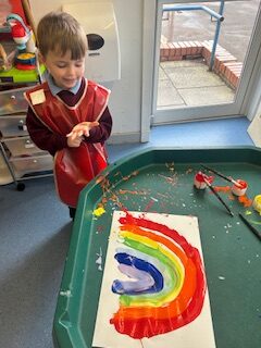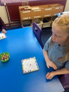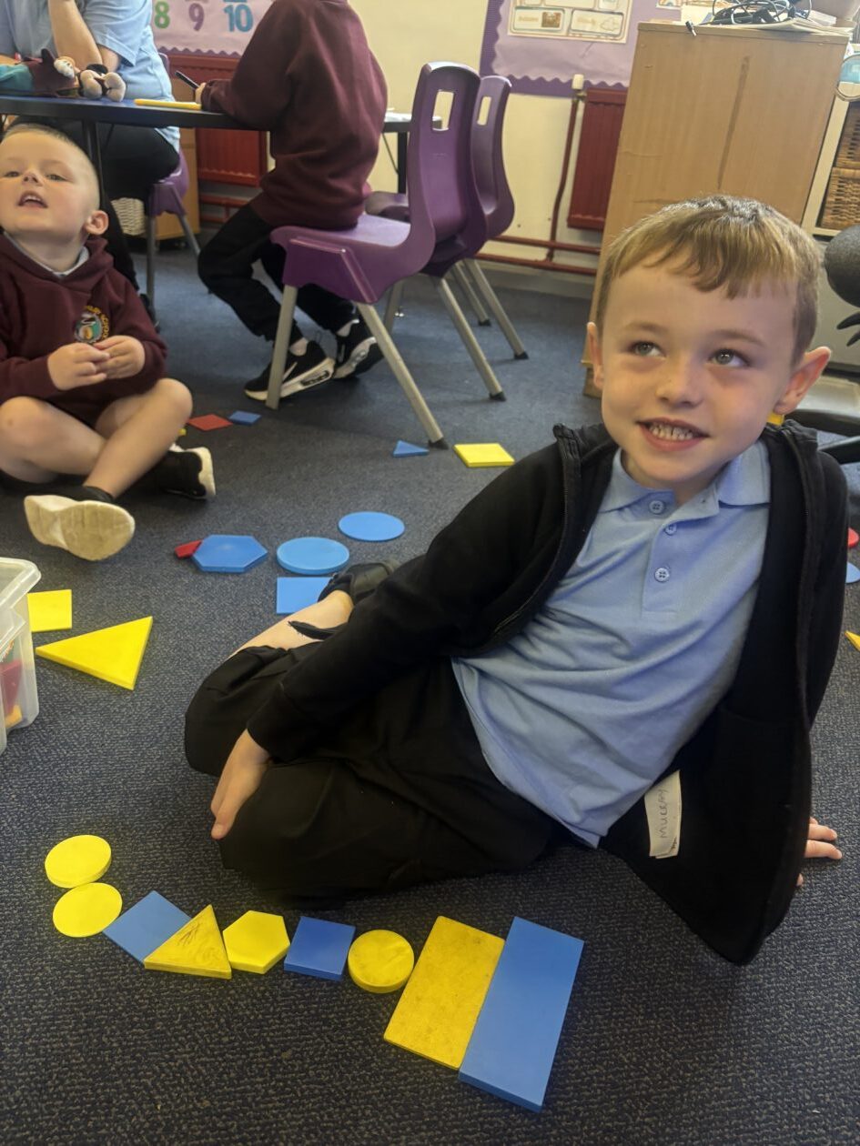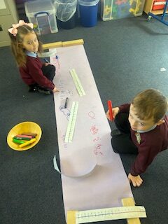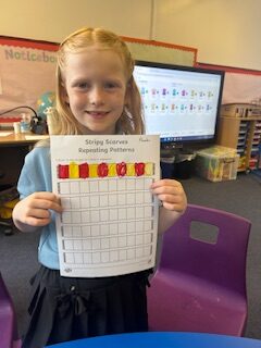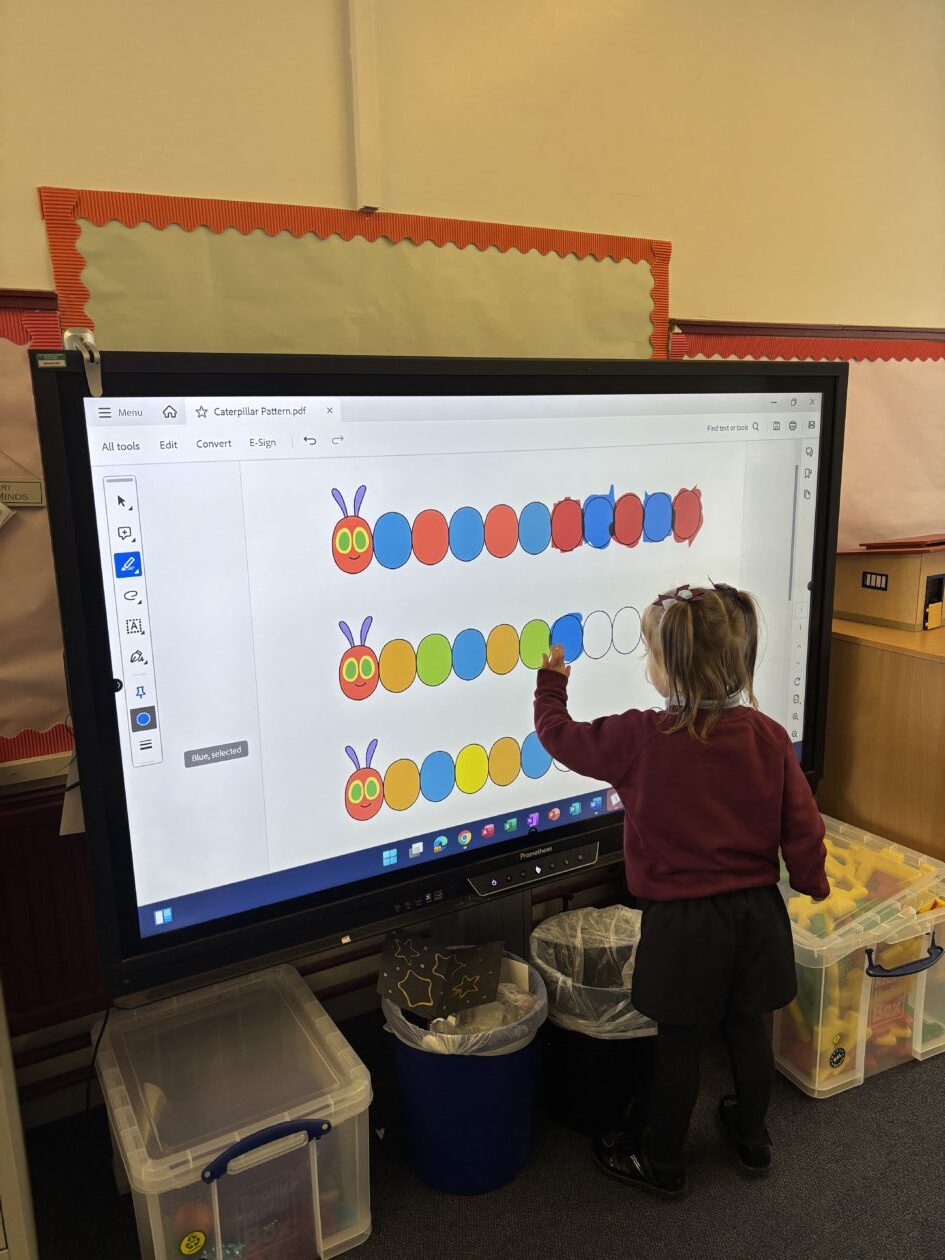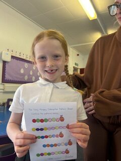 Later in the week, we worked in groups to continue some ‘caterpillar patterns’ on the big board and then used paint to continue some more! Some of us got very creative and made our own patterns using shapes. Some of us challenged ourselves to make more complicated patterns.