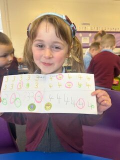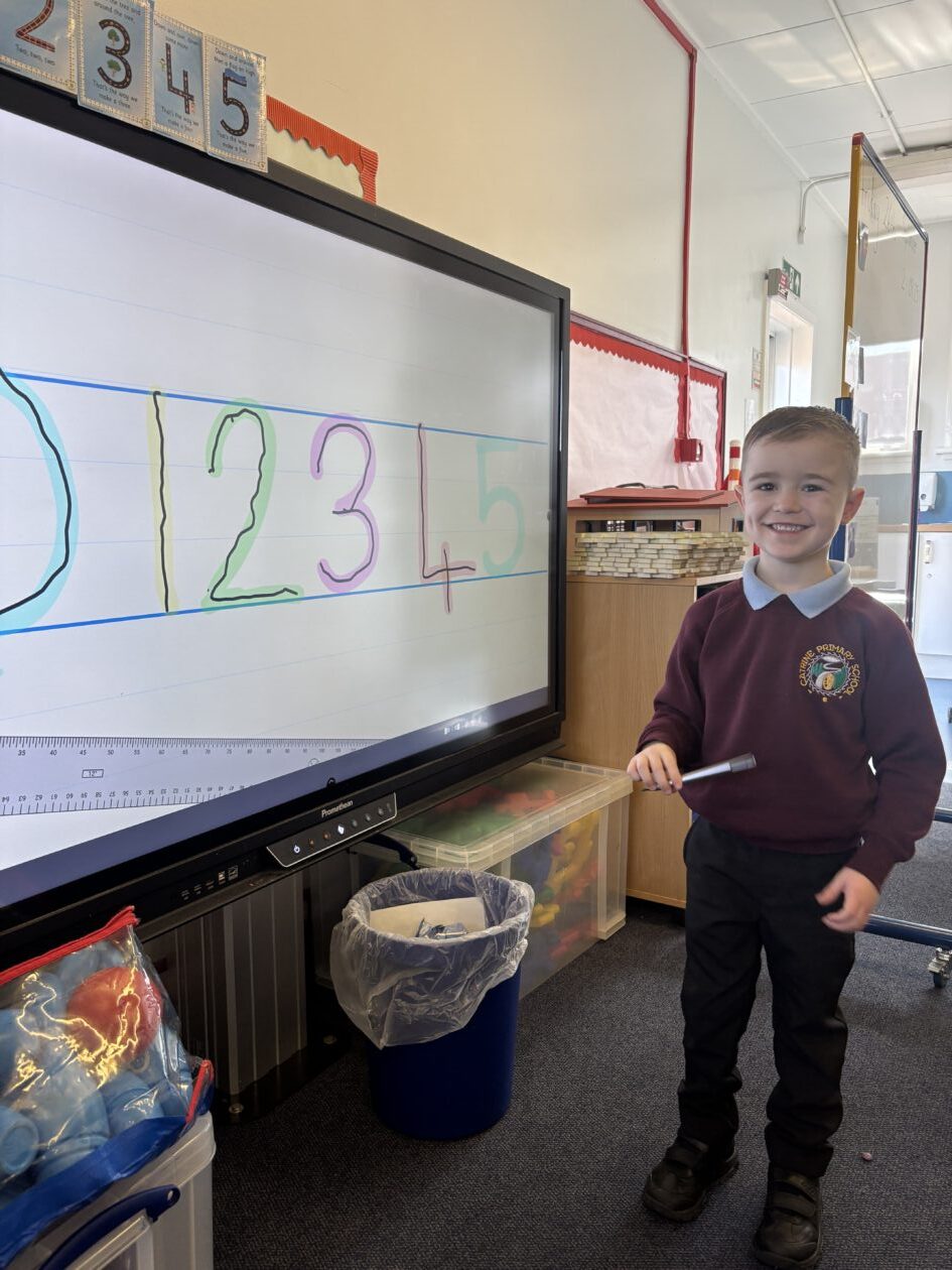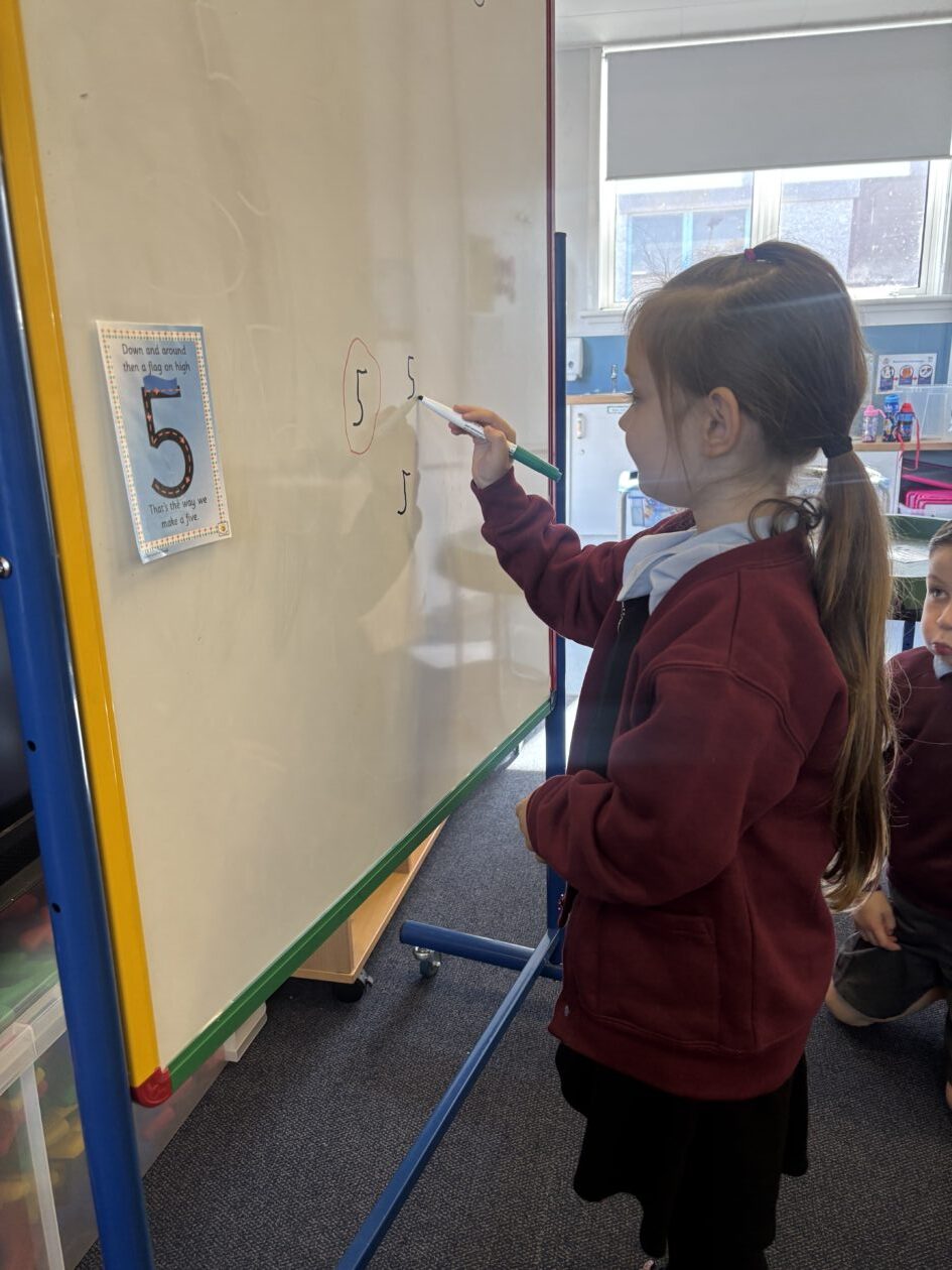 This week Primary 1 have been practising the formation of numbers. We have had a focus on forming the digits 0, 1 and 2. We worked hard to form each number carefully and enjoyed learning helpful rhymes to help us remember how to form them correctly.