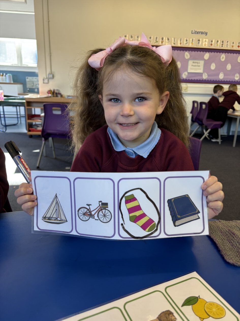 We have also been working really hard on our phonological awareness. We have been listening carefully to different sounds and discussing what sounds the same and what sounds different. Today we played an ‘odd one out’ game and managed to pick out which word started with a different sound than the others. This is a game that we can play at home for some practise, too!