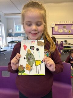 During our walk this week we collected leaves for our artwork. We decided to create leaf friends. Look at our amazing creations!