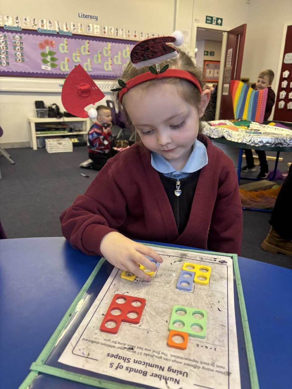 In numeracy, we have been learning about ‘the story of 5’. We have been using lots of our tools such as the rekenreks, numicon and other concrete materials. We also introduced part-part-whole models and have been using them to complete calculations.