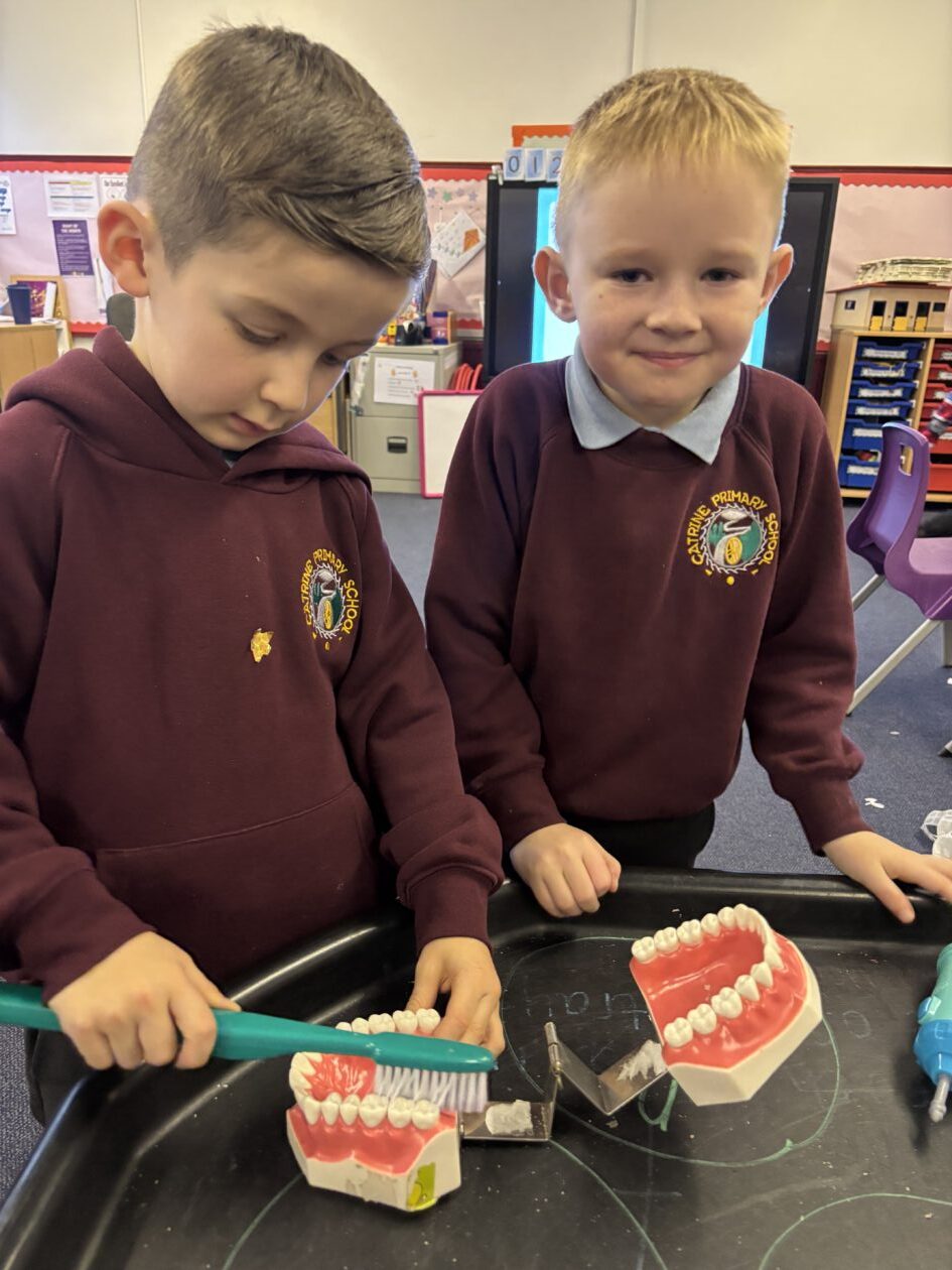 In health and wellbeing we have continued to learn about oral health. We know how to look after our teeth by brushing. We talked about how different types of food can impact our teeth and sorted food into categories.