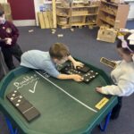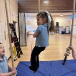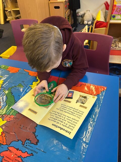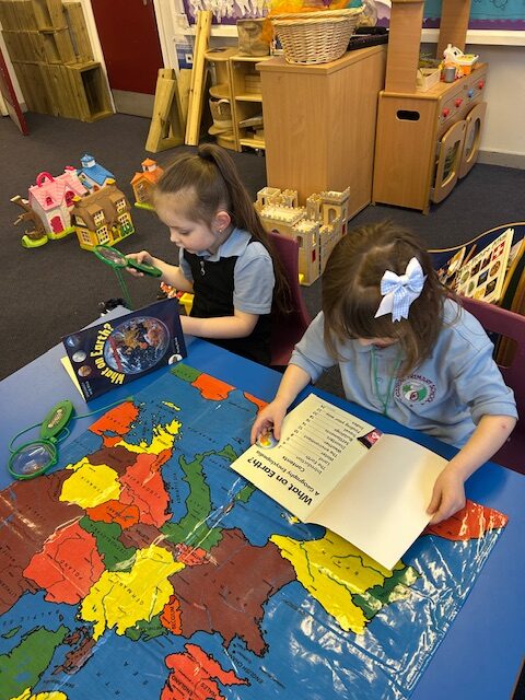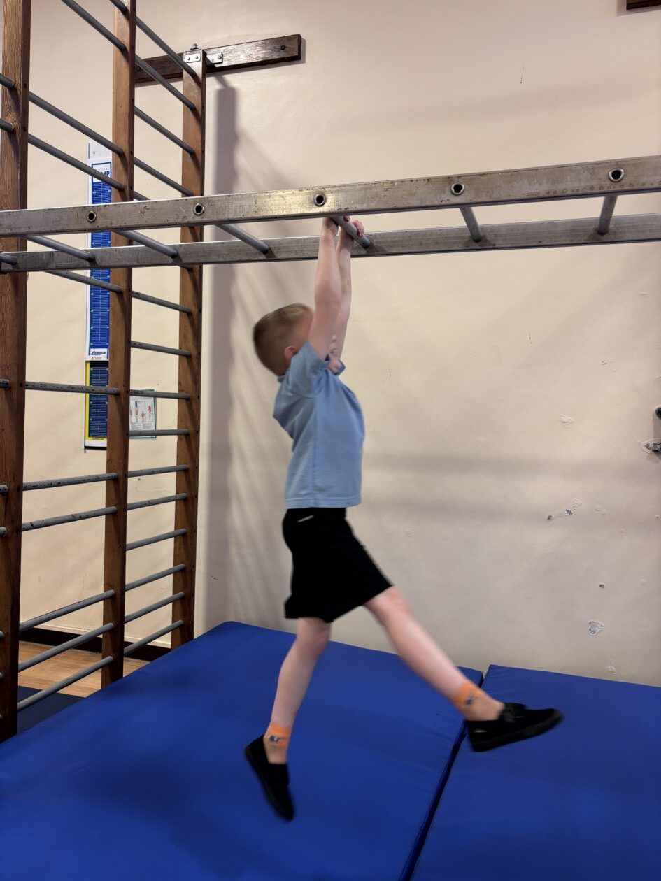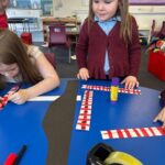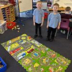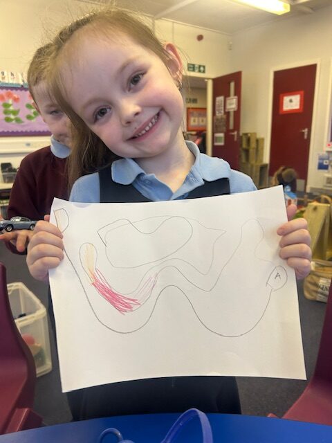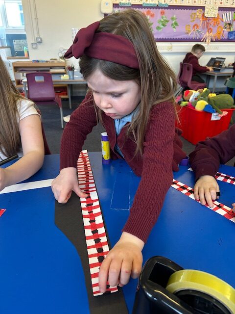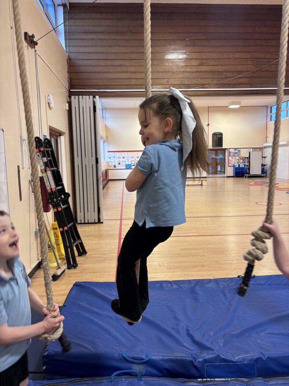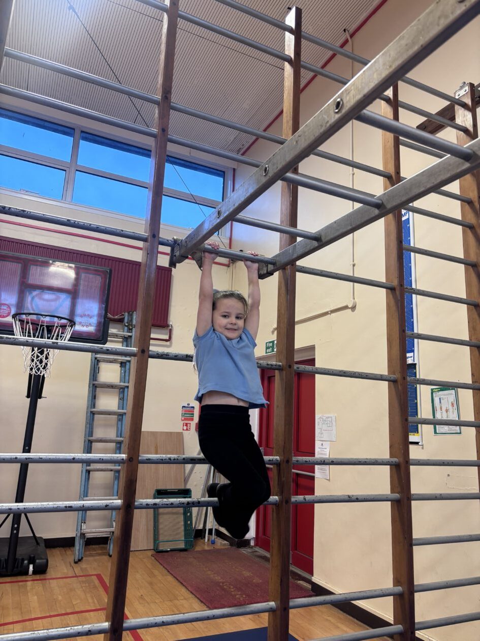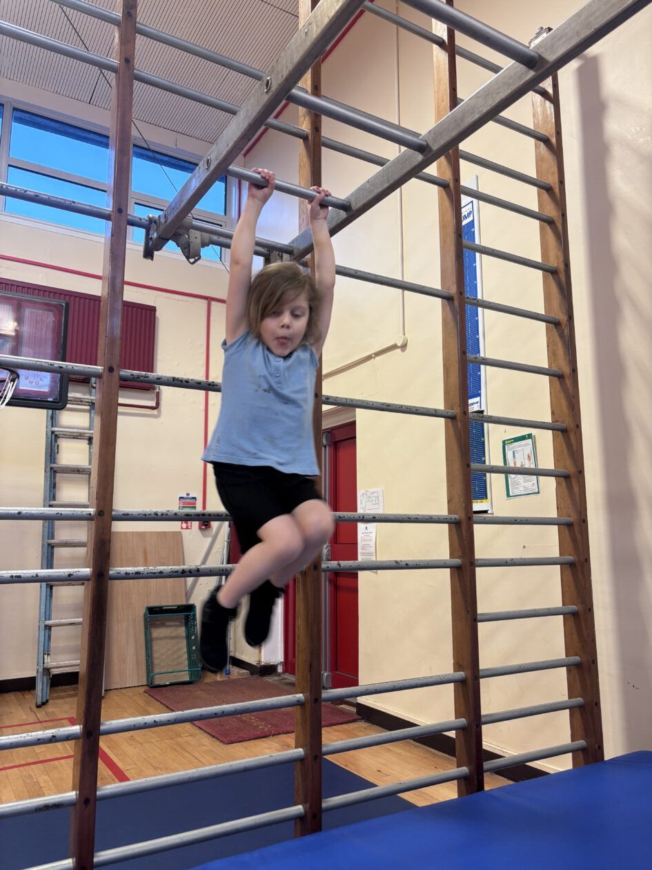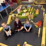 We have also been busy in the gym, continuing our gymnastics block.  We got a chance to use some of our large equipment including the monkey bars and ropes! As part of Scotland topic, we have been making maps. Some of us used the blocks to make a fantastic map of a town!