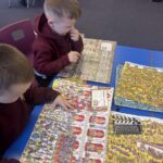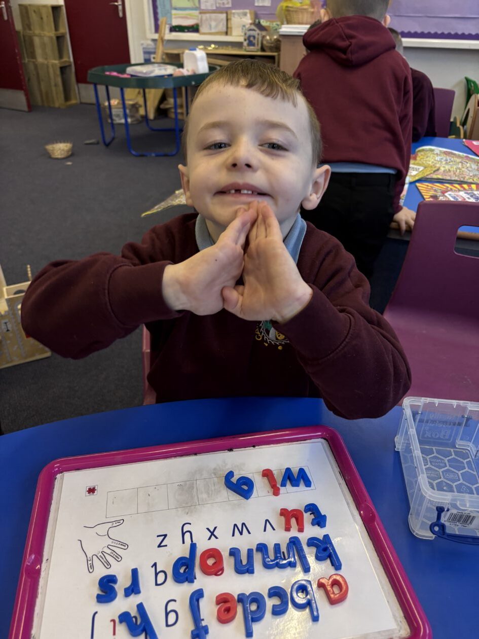 This week we focussed on the ‘h’ and ‘w’ sounds. We practised forming the letters and word building. We enjoyed creating headbands, hand hedgehogs, building hospitals, drawing Mrs Watt, making wands and enjoyed some Where’s Wally books!
