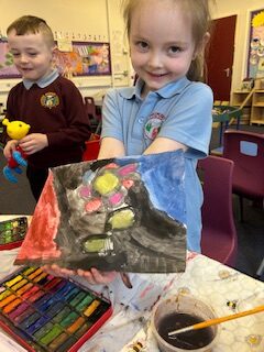 We’ve also been busy being very creative this week. We created wonderful watercolour art and had lots of fun playing the glockenspiels along to music.
