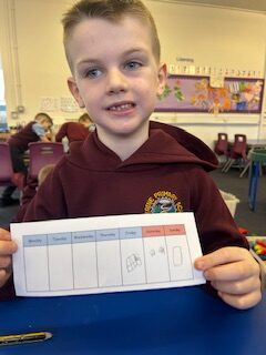 In numeracy, we have continued to investigate time. This week we have been exploring different ways to measure time. We had lots of fun working out how many things we could do in a minute, especially counting the many star jumps!