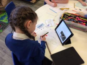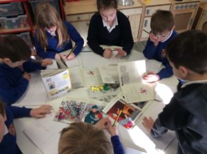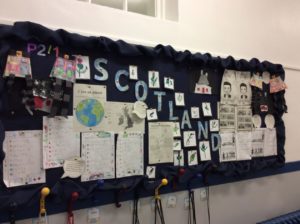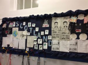 We have completed our Scottish topic and this is a picture of our wall display, showing some the things we have done. Also a couple of pictures of us researching information about Scottish animals.
