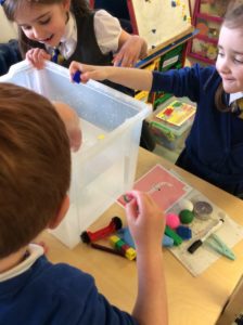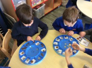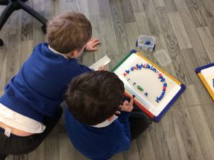 We have been learning to give directions, forwards and backwards to follow a simple route. We also explored programming the bee-bots to move across a grid.