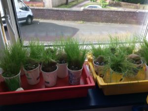 Our grass heads after just a few days..