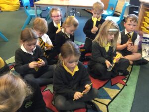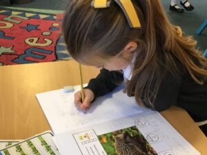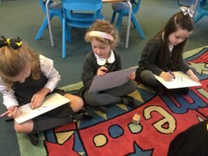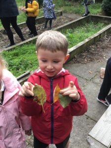 We have already started our new topic this week. We started off by looking for signs of Autumn and we did leaf rubbings. We also spotted signs of autumn on our autumn amble around the village! After the October holidays we will be exploring some Eco themes through our Litter Lab called Harriet’s Adventure.