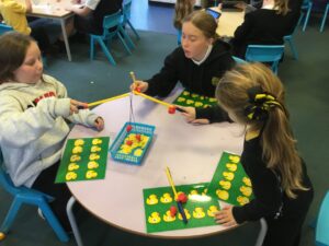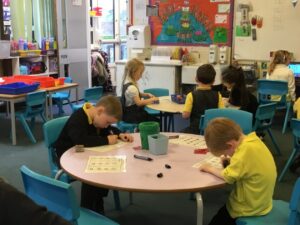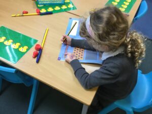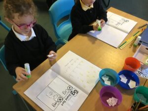 In maths, Primary 1s have continued to practise number recognition and number formation as well as counting up to 10. Primary 2s are practising writing numbers to 100 and finding numbers after, before and between. We have also continued to make bar graphs and have practised making tally marks.