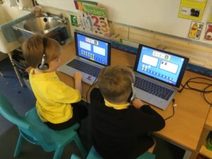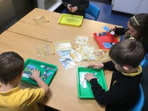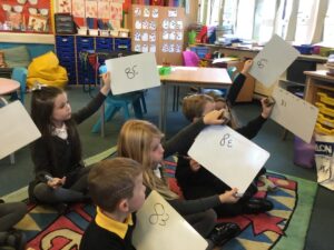 In Literacy, Primary 1s have been learning and then revising the first block of sounds (s a t p i n). We have now started to practise blending and spelling our first CVC words. Primary 2s have been practising their reading and sentence writing.