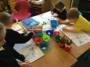 We have been really busy doing our number work in class. Primary 2s have been finding numbers after and before to 100. Primary 1s have been counting to 5 and practising number formation and number recognition. We have also started looking at data handling and have explored bar graphs and tally marks as part of our topic.