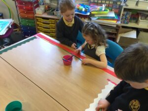 We are learning about length. We are measuring with non-standard units e.g. how many cubes long is the table.