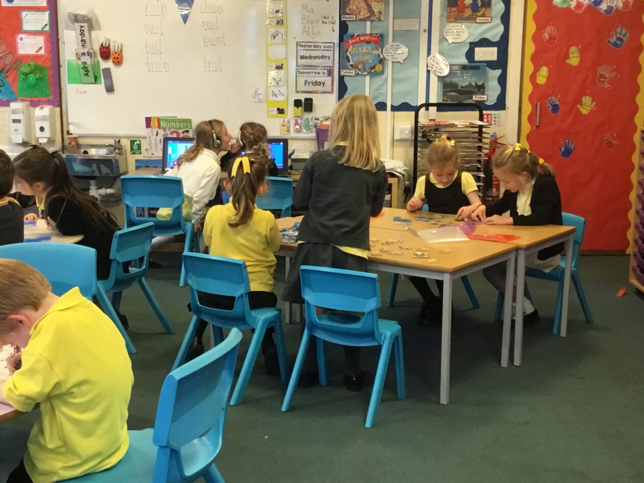 On Friday afternoon, our P7 buddies helped us with some structured activities. We enjoy spending time with our buddies.