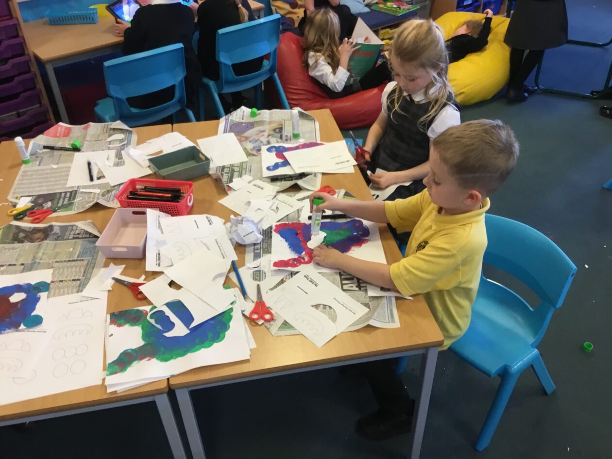 Primary 1s practised their /k/ sounds and Primary 2s wrote lots of tricky words. We have also practised sentence writing, even Primary 1s! We looked at numbers to 20 and sequenced them, as well as adding numbers within 10. P2s looked at tens and ones in numbers. In art we used sponges to make scary monsters.
