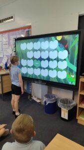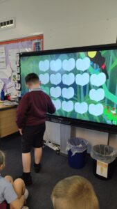 In numeracy they continued to learn about halves and practised counting in halves. They also practised some missing number calculations to help them with ‘Expressions and Equations’ that they have been working on with Miss Kay.