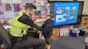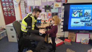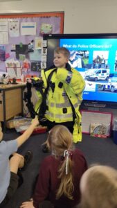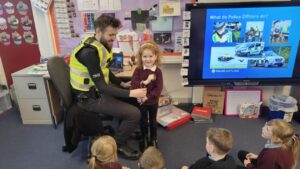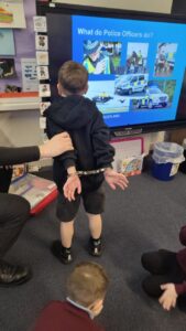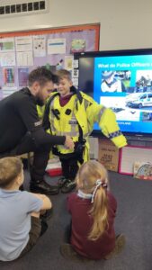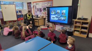 Today we had a visit from PC Shirkie who talked to us about people who can help us and road safety.