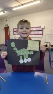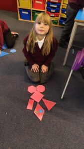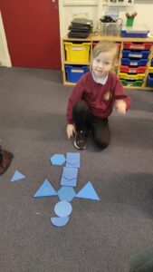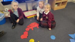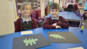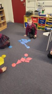 P2 have also been learning about shape. As our Scots poem is about a dinosaur, they used different shapes to create a picture of a dinosaur .