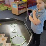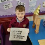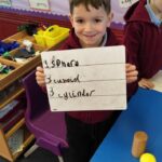 We have also been learning about 3D shapes including spheres, cylinders, cubes, cuboids and cones.  They enjoyed sorting 3D shapes, building a castle with some of the 3D shapes and then writing down how many of each shape they had used.