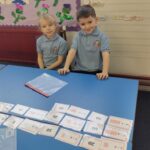 This week P2 have been learning the ‘ow’ phoneme as in cow, owl and tower.  They practised their spelling words with a partner using magnetic letters and boards.