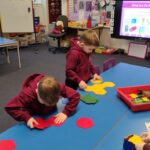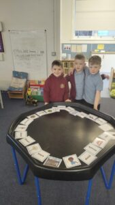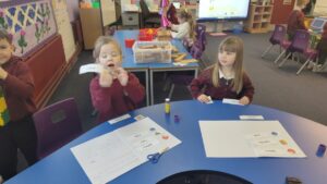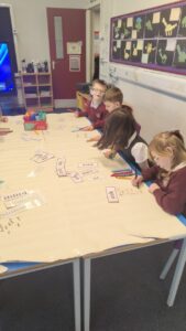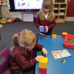 We have also been learning about  2D shapes, exploring how many sides and corners a shape has to help identify what shape it is.  The pupils really enjoyed playing a game of shape bingo to finish off the lesson.