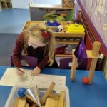 P2 have also been learning about measure and were using cubes to measure items of stationery. They also used their hands to measure how long items of furniture in the class were.
