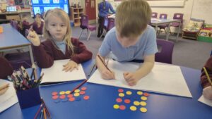 In Maths this term our focus will be multiplication and division.  This week they have been practising recognising and making equal groups.