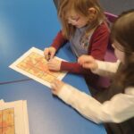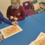 They have been doing more work on directions and Miss Campbell has been introducing simple co-ordinates and compass directions to them.