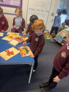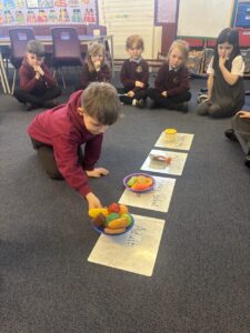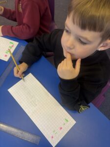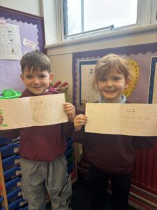 The pupils have been measuring the area of flat shapes using loose parts, counters and squares this week. Additionally, they have been learning to partition 2-digit numbers.