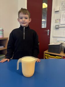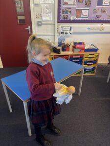 The pupils were also investigating how our nutritional needs change as we grow. The pupils enjoyed learning how to make a baby bottle for a newborn baby; feeding an older baby mashed foods and estimating how much milk 4-6 month old babies drink in a day. The pupils then created a healthy, balanced packed lunch that primary school aged children need to learn, grow and play.